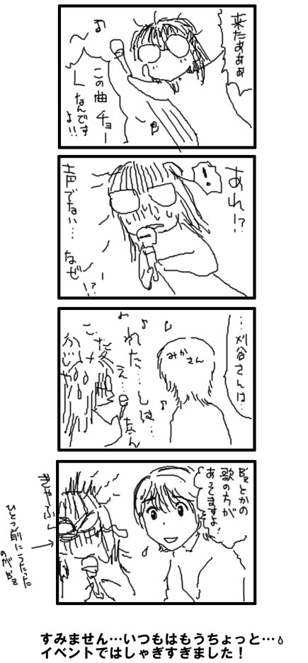 実際はみかさん、私の描いた漫画とは違って、満面の笑みで言ってらしたから、きっとほめてくださってたんですよ!(笑)