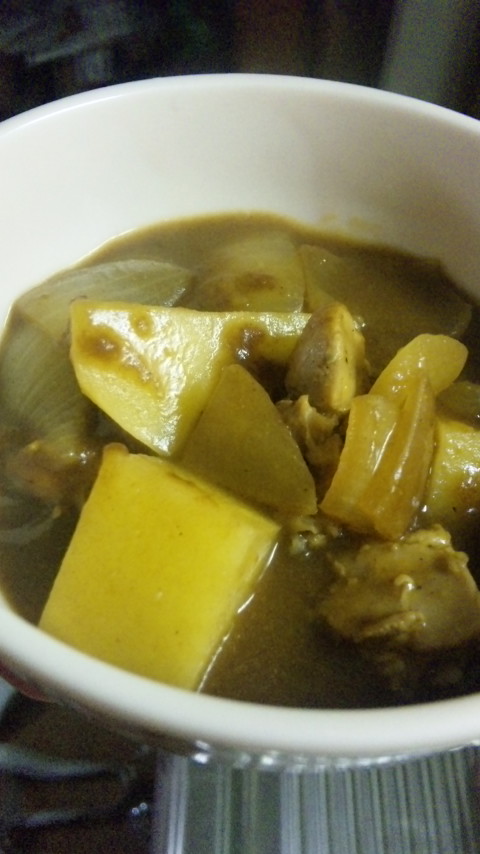 最近までずっと芋とブロッコリーのミルク煮を食べてたのですが、それに入れた鶏胸肉があまりにかたくてうんざりしてたので、唐突に鶏もものチキンカレーが食べたくなって作りました。